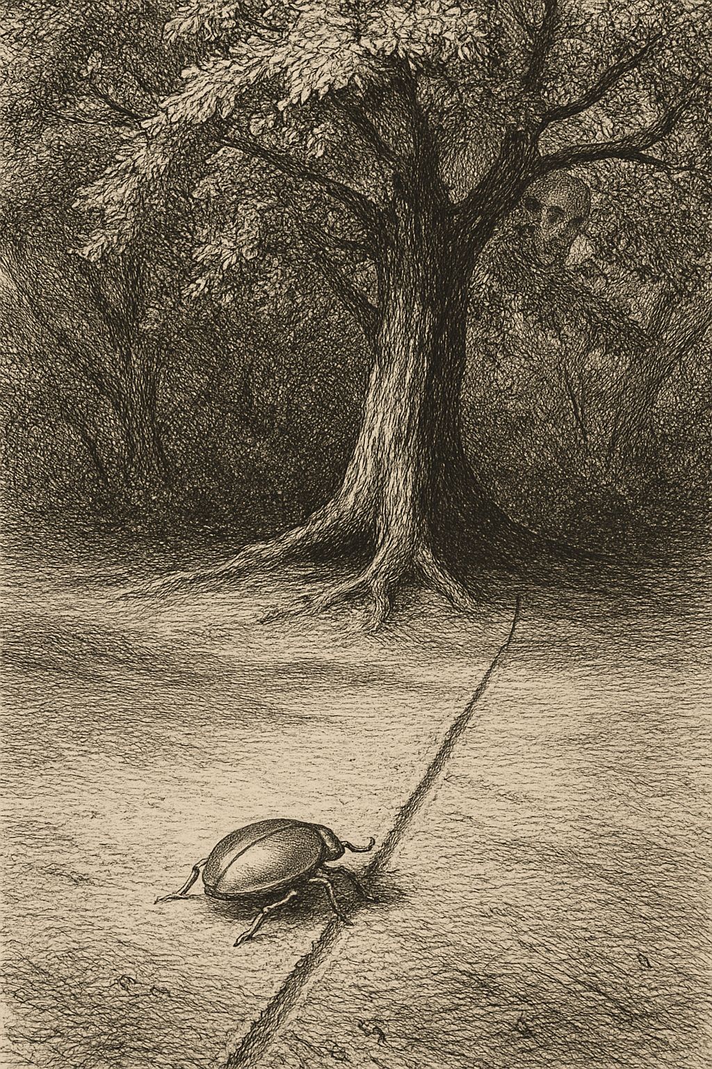 Der exzentrische William Legrand entdeckt auf einer abgelegenen Insel ein Pergament mit einer verschlüsselten Botschaft. In seiner Kurzgeschichte „Der Goldkäfer“ schildert Edgar Allan Poe minutiös, wie der Protagonist den Code knackt, der ihn auf vielerlei Umwegen zum Schatz des legendären Freibeuters Captain Kidd führt. Hier entfaltet der Autor das Muster der analytischen Kurzgeschichte – eine Verdichtung auf ein Geheimnis, das den Leser zugleich rational und emotional fesselt.